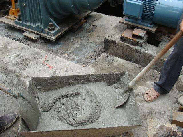 2)將1公斤快硬水泥放入鍋內,加入0.30-0.36公斤水,迅速拌成漿體。冬天施工宜用溫水,夏天施工宜用冷卻水,拌和水量過多或太少均影響施工質量。水量過多漿體稀,強度下降;水量過少漿體干硬不密實。條件許可時可先試拌。